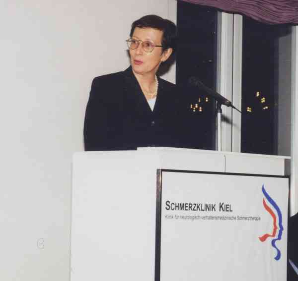 Ministerpräsidentin Heide Simonis während ihrer Ansprache zur Eröffnung der Schmerzklinik Kiel, Januar 1998.