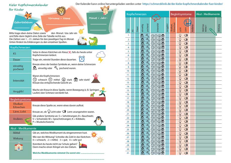 Der Kieler Kopfschmerzkalender für Kinder