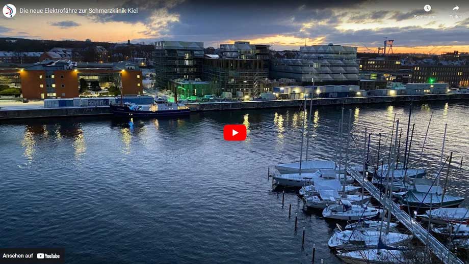 Die neue Elektrofähre zur Schmerzklinik Kiel Die neue Elektrofähre zur Schmerzklinik Kiel Endlich ist sie da: die neue elektrische Fähre zur Schmerzklinik Kiel. Sie ist lautlos. Sie ist niedlich. Sie ist vernünftig. Sie ist nun Gegenwart und gleichzeitig Zukunft. Es geht doch. Sie schwebt über dem ...