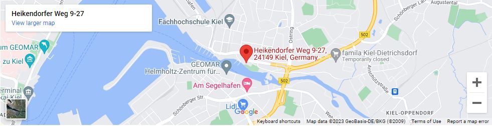 In Kiel immer der Ausschilderung “Ostuferhafen” folgen, Sie werden dann direkt zur Klinik geleitet: zunächst auf die B76 (Westring/Theodor-Heuss-Ring) Richtung Lübeck, dann auf die B502 (Ostring) Richtung Laboe.