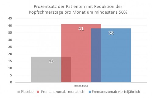 - 41% in der Gruppe, die Fremanezumab mit monatlicher Behandlung erhielt und