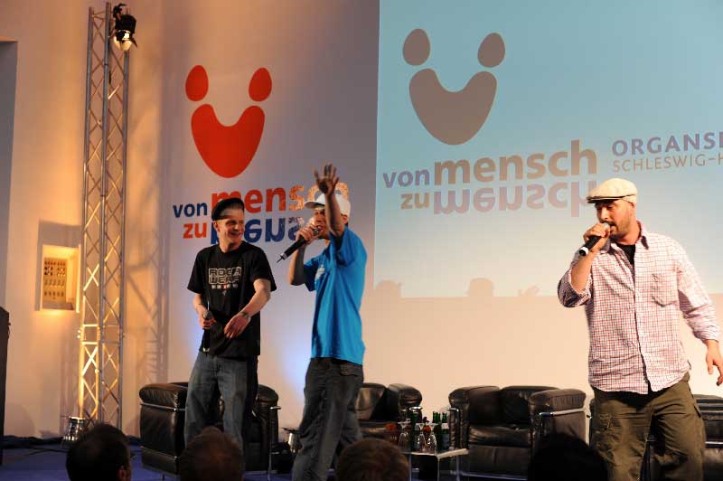 Das hat der Hamburger Rapper Bo Flower beim Organspendedialog des Gesundheitsministerium des Landes Schleswig-Holstein und der TK am 27. April 2009 in der Kunsthalle in Kiel demonstriert. Mit seiner Band sang er den Titelsong des gleichnamigen Musikprojekts „Von Mensch zu Mensch“.