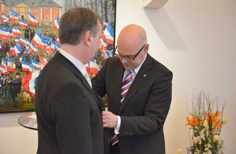 Der Regierungschef würdigte die Verdienste des Ordensträgers: Sie zeigen seit mehr als 20 Jahren ein für Deutschland beispielloses Engagement im Bereich der Erforschung und Versorgung von Migräne sowie anderer chronischer Kopfschmerzen