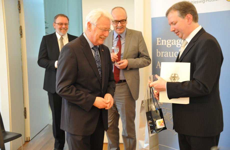 KIEL. Professor Dr. Hartmut Göbel ist vom Bundespräsidenten Joachim Gauck mit dem Verdienstkreuz 1. Klasse des Verdienstordens der Bundesrepublik Deutschland ausgezeichnet worden. Ministerpräsident Torsten Albig überreichte die Auszeichnung am Donnerstag, 28. Februar, in Kiel.